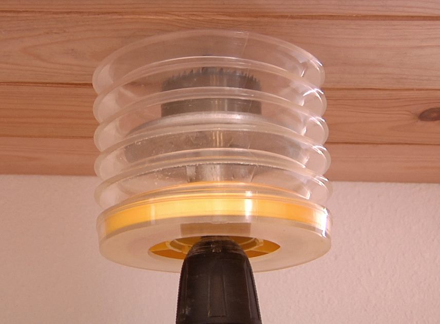 Para agujeros de mayor diámetro, Stop Polvo Coronas, te ayudará a instalar alógenos, pasos de tuberías, etc. Se terminó el polvo en los ojos, en la ropa, en el suelo. El taladro también queda protegido, garantizando una mayor vida útil para la herramienta.